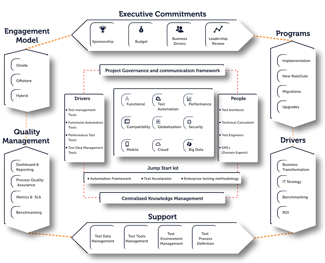 TCOE helps to avoid the cost and risk of business disruption, implement new innovative technologies in less time and ensure consistent quality in business-critical applications.